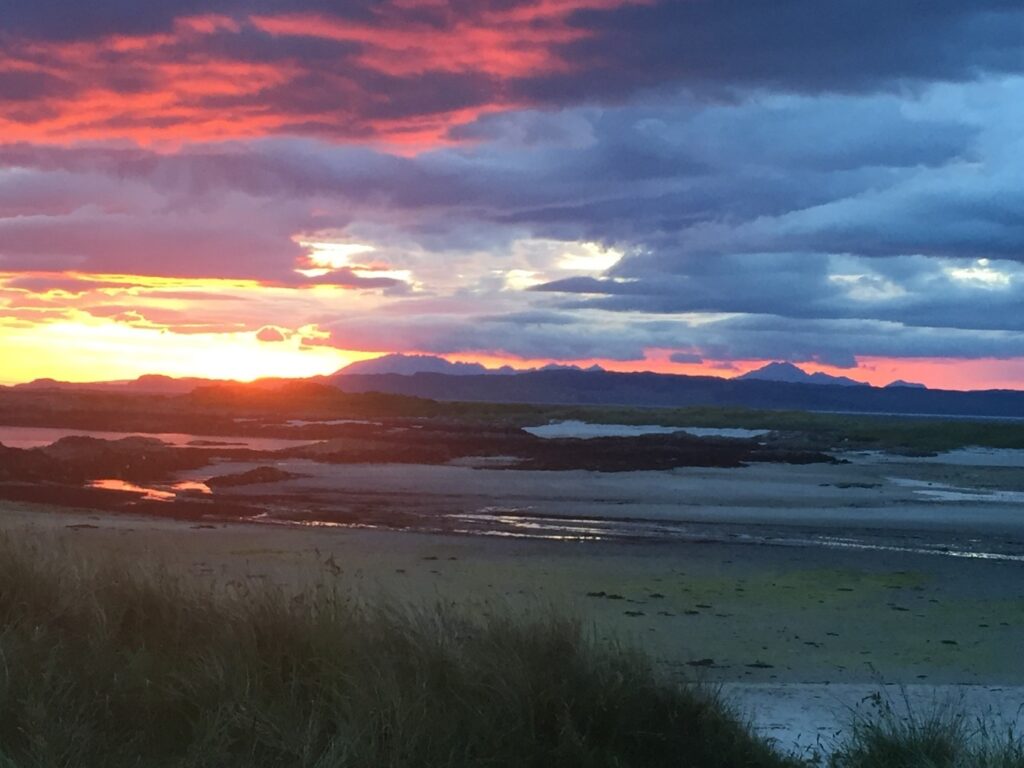 sunset Arisaig camping Four Seasons Campers campervan hire Scotland